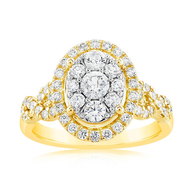 0.95 Carat Diamond Cluster Oval Ring in 14ct Yellow Gold