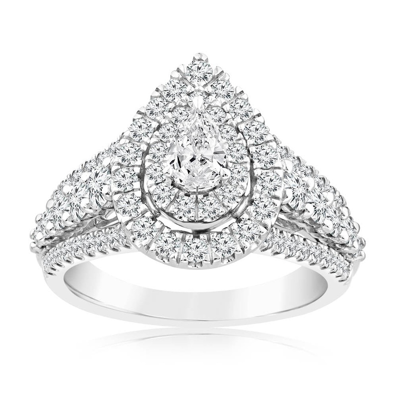 1.40 Carat Diamond Cluster Pear Ring in 14ct White Gold