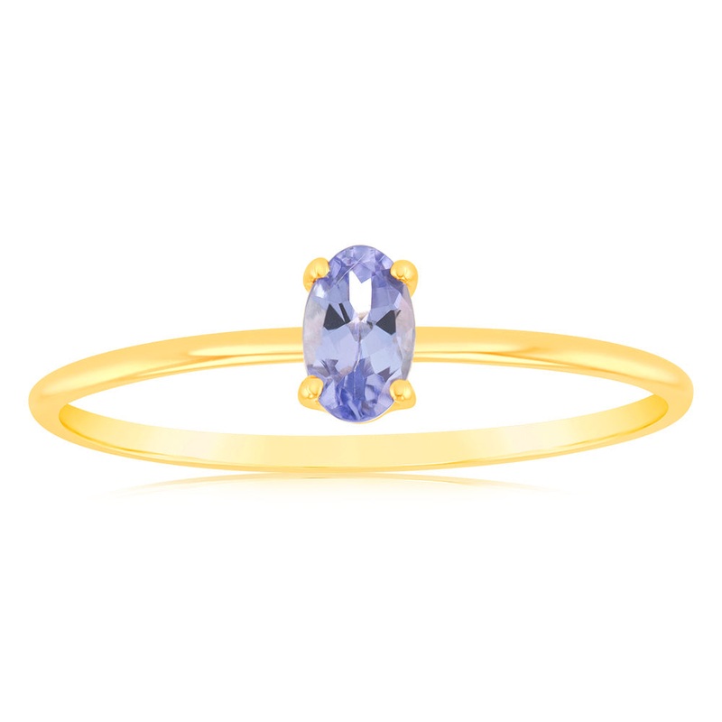 1 Oval Tanzanite 5x3mm in 9ct Yellow Gold