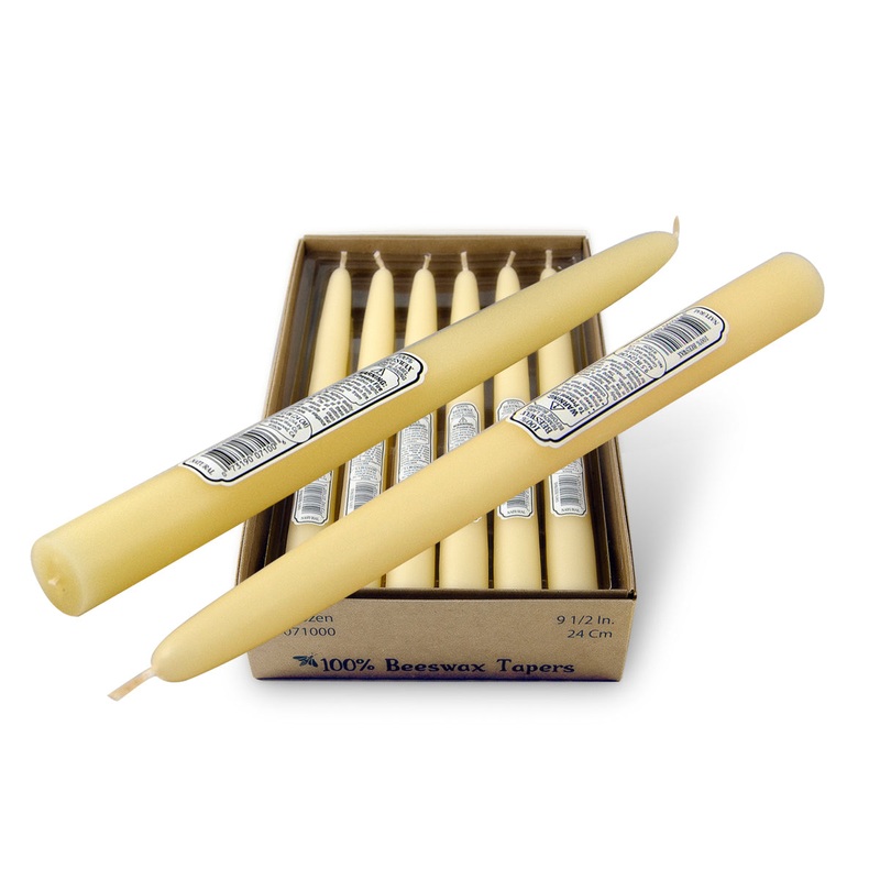 Only the highest quality natural beeswax is used in the making of these hand-dipped 100% Beeswax Tapers. There are no additives. fillers or artificial fragrances added. The all-cotton wick produces a clean-burning candle that supplies natural elegance for every table. Beeswax candles burn for longer and brighter while emitting a warmer tone flame compared to soy candles.