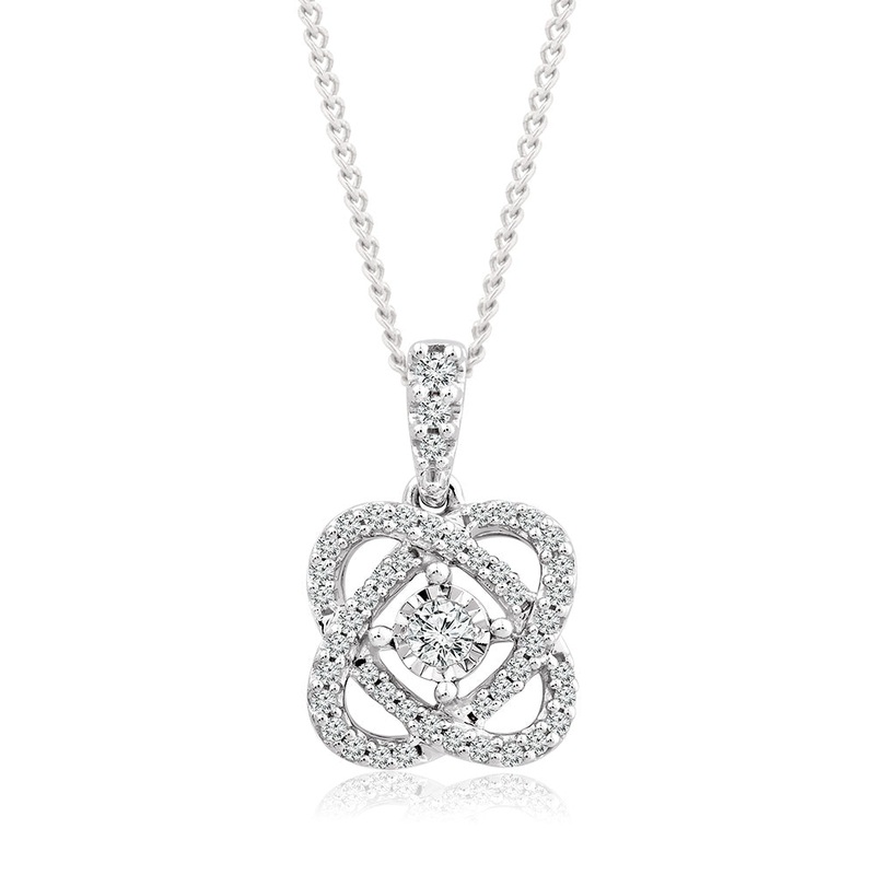 Elevate your style with this 10-carat white gold necklace features a stunning floral pendant that has been set with 1/5 carat brilliant cut diamond. This timeless piece is designed to impress and adds a touch of luxury to any outfit. The pendant and chain have been crafted from premium 10-carat white gold which perfectly compliments the sparkle of those brilliant cut diamonds. This pendant and chain necklace is a beautiful and versatile piece of jewellery that is sure to make a lasting impression. With its expert craftsmanship, high-quality materials, and timeless design, it is the perfect addition to any jewellery collection.