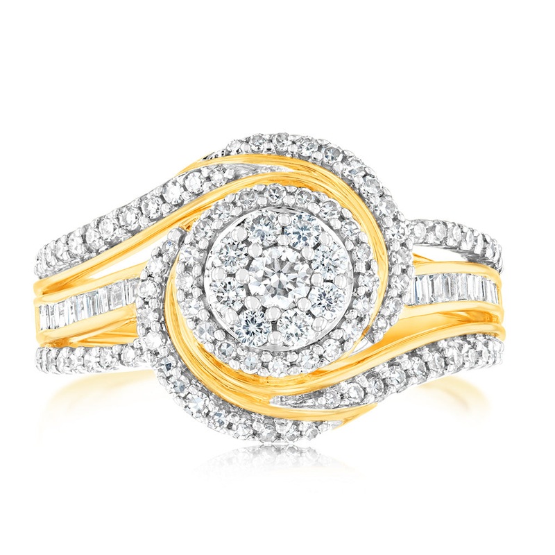 10ct Yellow Gold 3/4 Carat Diamond Round Cluster Ring