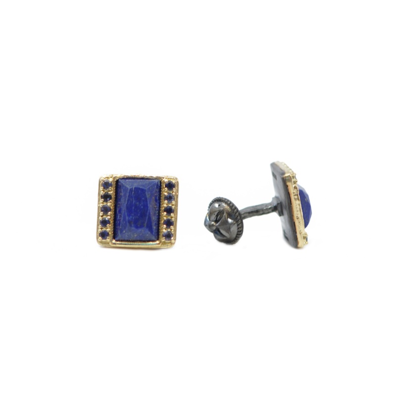 18k BlackenedYellow Gold Cufflinks with Iolite and 13×9 Lapis Lazuli.