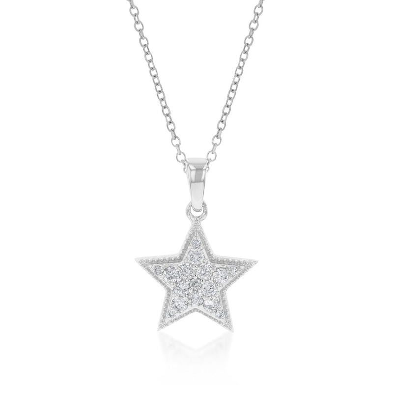 14ct White Gold 1/10 Carat Diamond Star Pendant On 45cm Chain