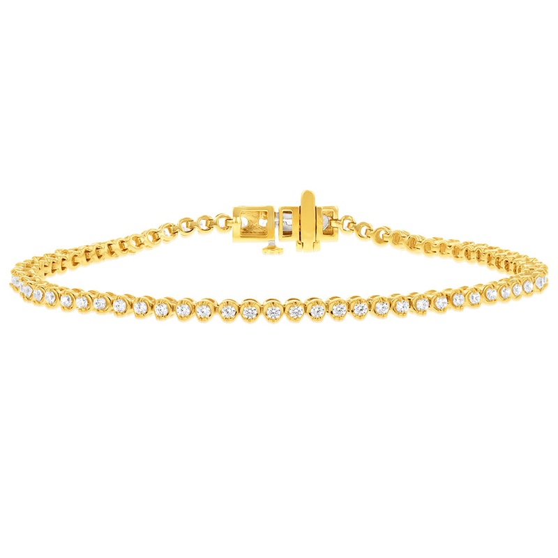 Adorn your wrist with timeless elegance. Our 14ct Yellow Gold 1.2 Carat Diamond Tennis Bracelet, featuring 70 brilliant diamonds, adds sophistication and charm to any look.