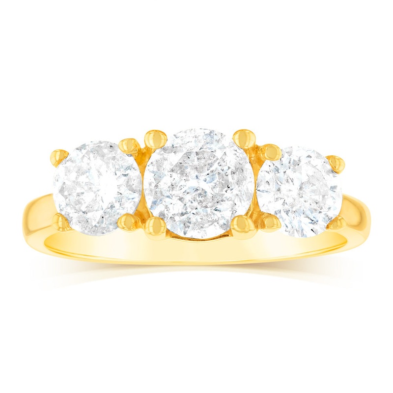 14ct Yellow Gold 2 Carat Diamond Trilogy Ring with 3 Round Brilliant Cut Diamonds