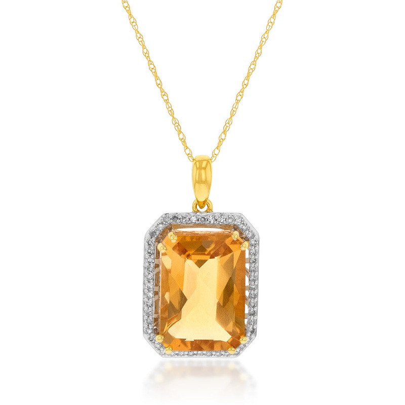 14ct Yellow Gold 6.75ct Citrine and Diamond Pendant