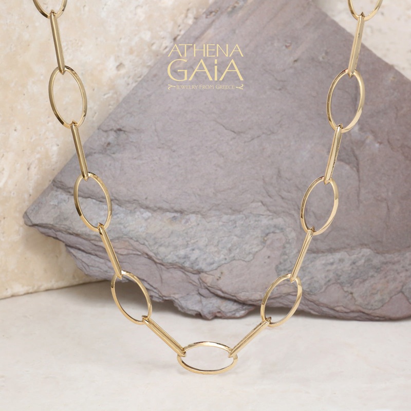 The necklace will be made to your length by the designer. The necklace can also be sized as a bracelet using the same links and clasp.