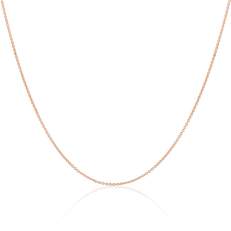 14K Rose gold 16″ 0.7mm diamond cut cable chain with lobster clasp.
