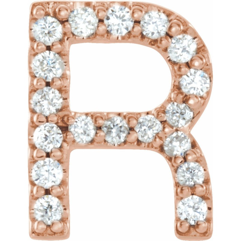 86797 / Set / 14K Rose / R / Each / Polished / .06 Ctw Diamond Initial Earring W/Back