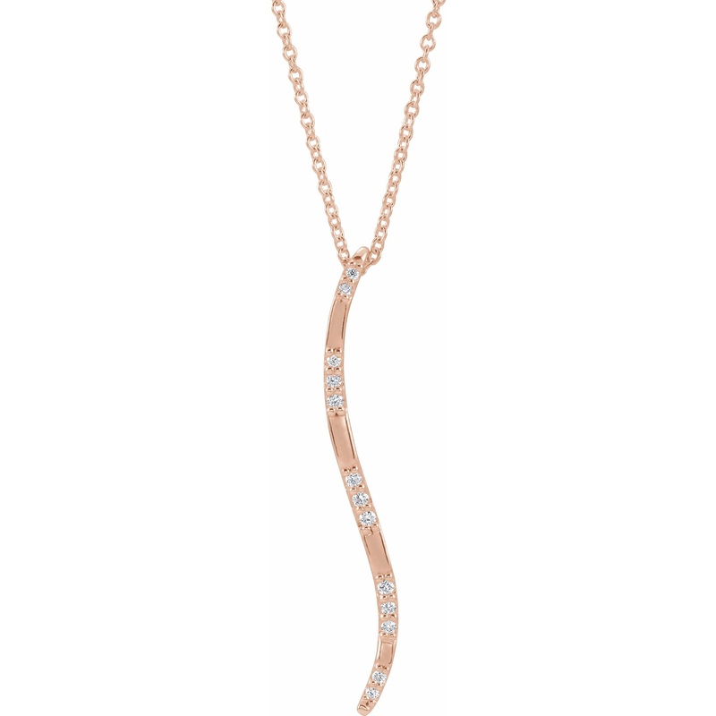 87033 / Necklace / Set / 14K Rose / 33.9 X 5.2 Mm / 16-18 In / Polished / .07 Ctw Diamond Freeform Vertical Bar Necklace