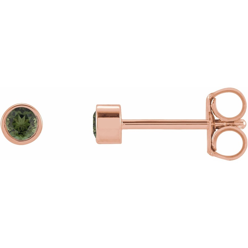 2000417 / Earring / Set / Green Tourmaline / Round / 2 Mm / 14K Rose / Pair / Friction Backs Included / Polished / Green Tourmaline Micro Bezel-Set Earrings