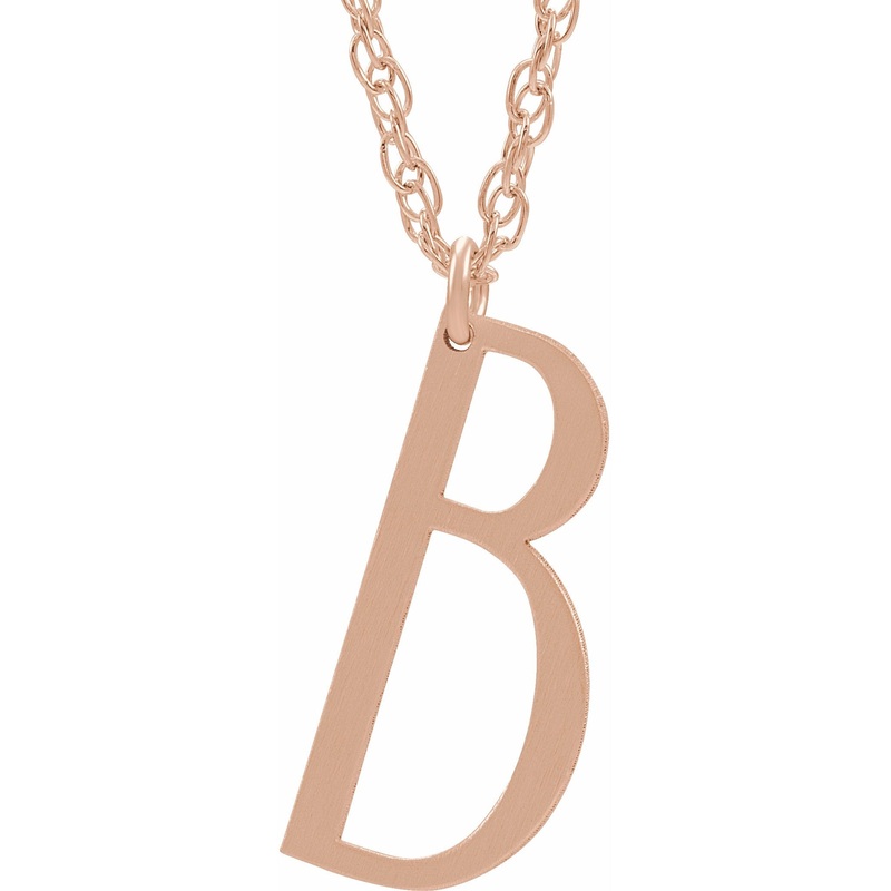 87091 / Necklace / 14K Rose / B / 25 Mm / 16-18 In / Polished / Block Initial Necklace With Brush Finish