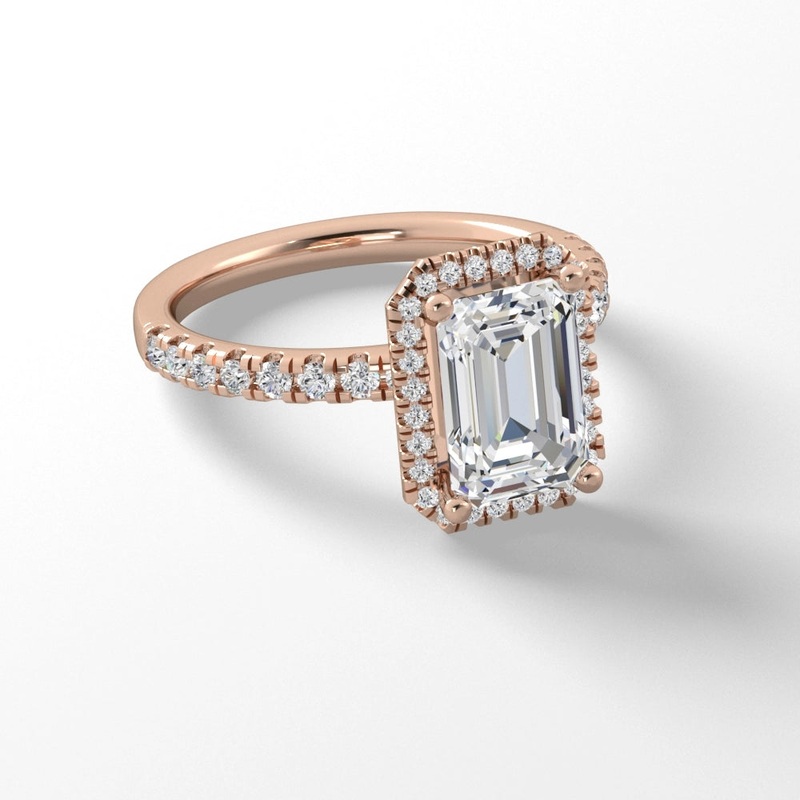 14K Rose Gold Diamond Semi-mount Ring with Rectangle Halo