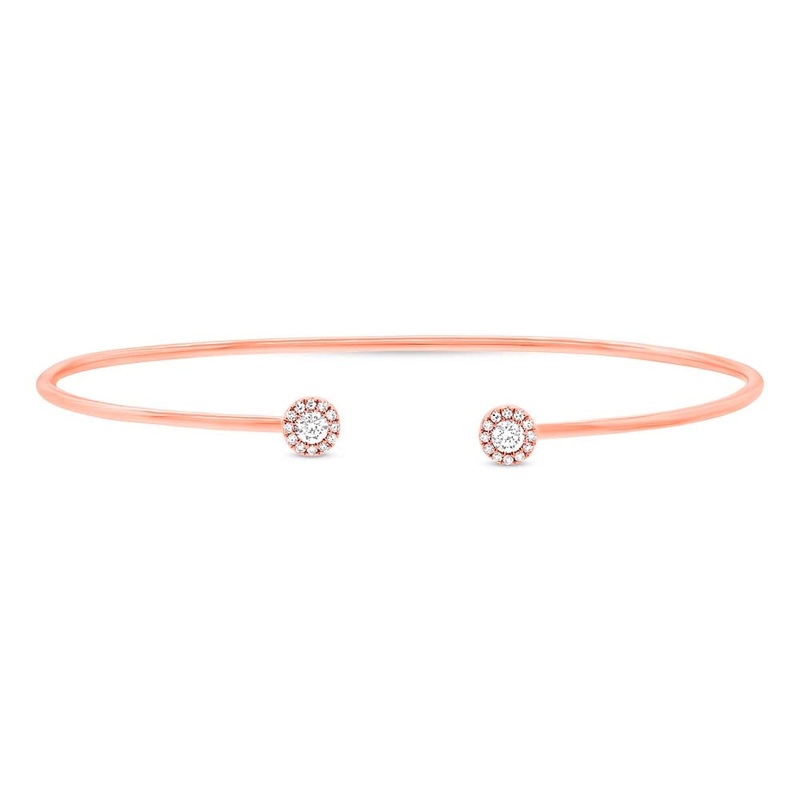 Ladies diamond bracelet in 14 karat rose gold. Set in the bracelet are two round brilliant cut diamonds and 24 single cut diamonds with a total weight of 0.23 carat.