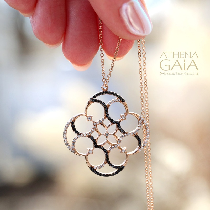 This listing is for an 30 inch Open Flower Stone Necklace in 14k Rose Gold with Clear and Black Zircon, as shown. This is a great layering statement piece, or beautiful worn on its own.