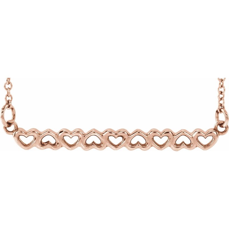 86769 / Necklace / 14K Rose / 27.5 X 2.5 Mm / 16-18 In / Polished / Heart Inspired Bar Necklace