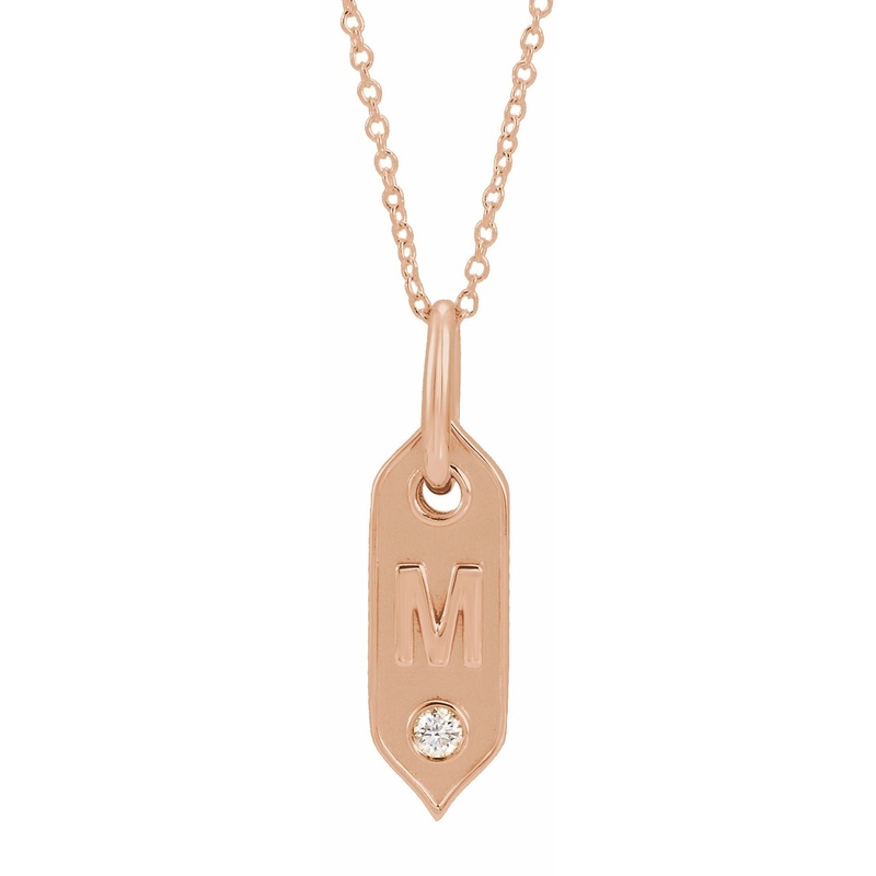 653627 / Set / 14K Rose / M / 16-18 In / Polished / .05 Ct Diamond Initial Necklace
