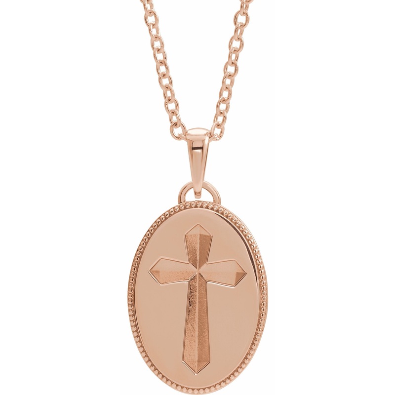 87014 / Necklace / 14K Rose / 20.9 X 13.61 Mm / 20 In / Polished / Oval Cross Medal Necklace