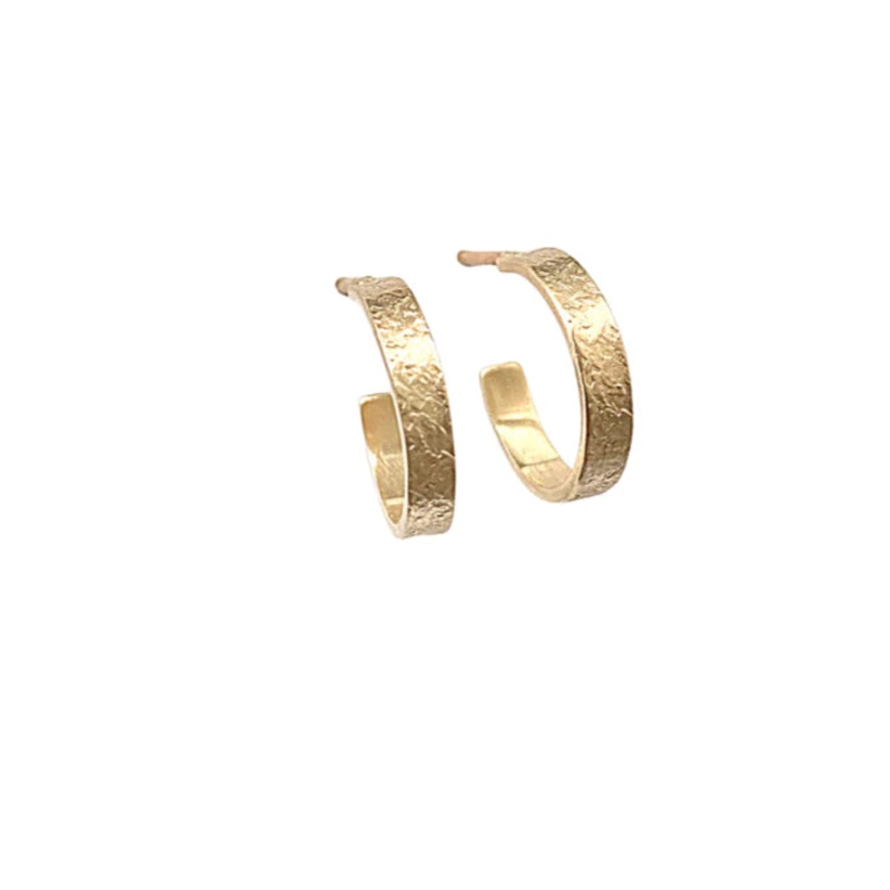 Introducing these Everyday Elegance Gold Huggie Hoop Earrings. Elevate your daily style with these 14K gold classic huggie hoops. Their exquisite texture adds dimension and catches the light beautifully, while the matte finish offers understated sophistication. Meticulously crafted, they’re a versatile choice for both everyday wear and special occasions.