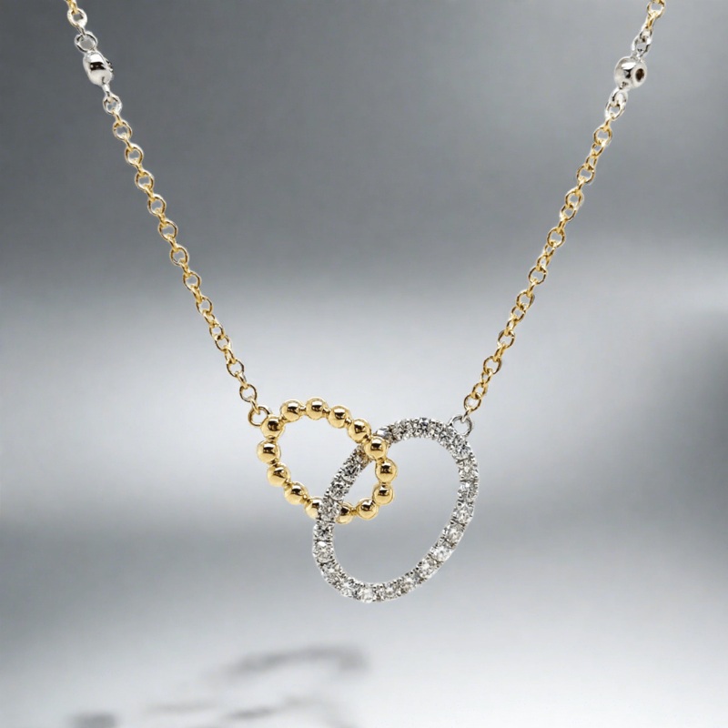 Elegant in design, this on-trend double oval diamond and beaded pendant hangs on a 18″ cable chain with 26 prong set diamonds, perfect for everyday wear. The perfect balance of sophistication and style. This luxurious necklace features a stunning double oval diamond and beaded pendant, effortlessly suspended from an 18″ cable chain embellished with four bezel set diamonds. Designed for everyday wear, it’s a timeless piece that will elevate any outfit.