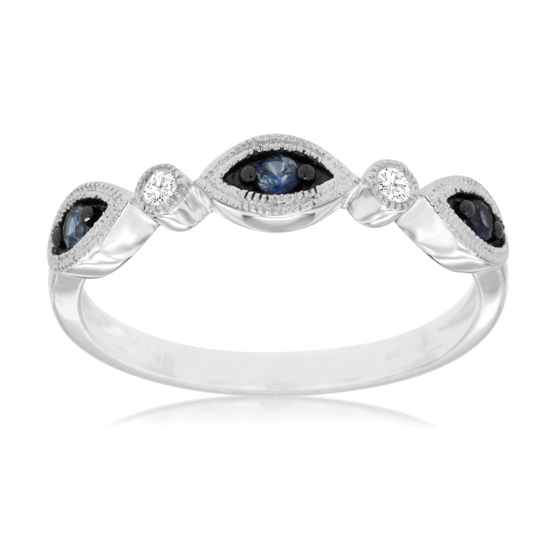 This luxurious 14K white gold ring features an exquisite blend of 0.04cttw of brilliant diamonds and 0.14cttw of shimmering sapphire, all bezel set for a classic yet timeless look. A unique choice for a special occasion, this stylish ring is sure to turn heads.