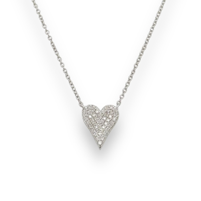 Adorn yourself with elegance and beauty with this exquisite 14K white gold heart pendant, delicately adorned with 0.15ctw of pave diamonds. Its stunning and delicate design makes it a timeless piece of jewelry, making it a perfect and luxurious addition to any wardrobe. Can be worn 14, 16 or 18 inches.