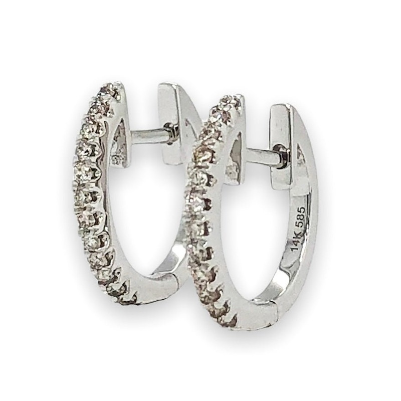 Go from drab to fab with these sweet 14K White Gold Hoop Earrings! Set with 0.20cttw of dazzling I-J/SI2-I1 diamonds, this sparkly accessory adds just the right amount of sparkle and pizzazz to take any look to the next level! Get huggable glamour with these mini 13mm hoops!