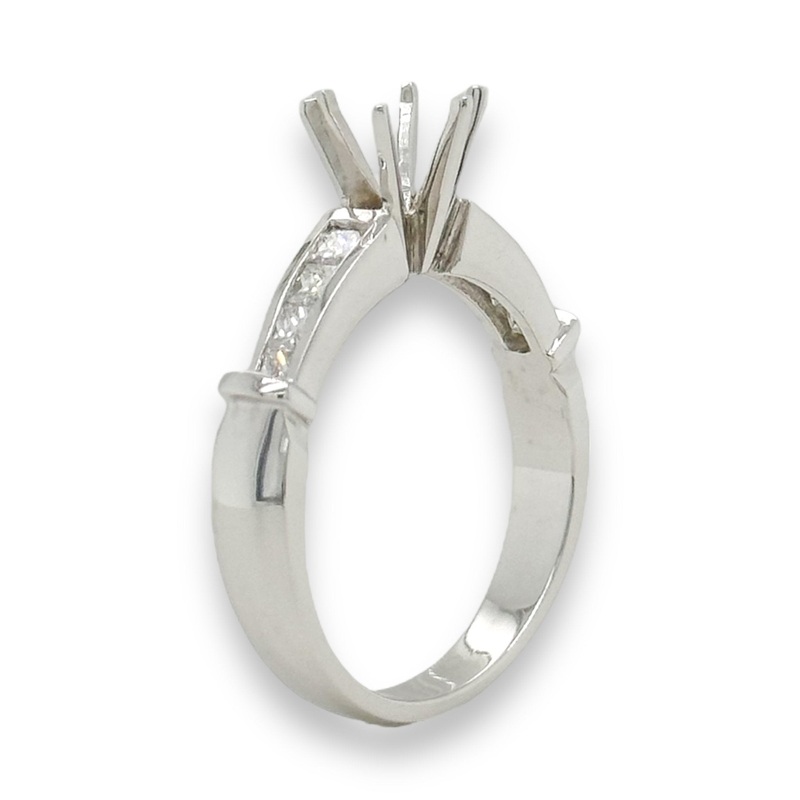 Show off your beloved diamond in a way that will have everyone in awe with this dazzling 14K White Gold 0.52cttw 6-prong princess cut engagement ring mounting. Designed with intricate details and expert craftsmanship, it’s a timeless piece that’s so perfect for your one-of-a-kind stone. And no matter your size, up or downthis beauty can be yours!