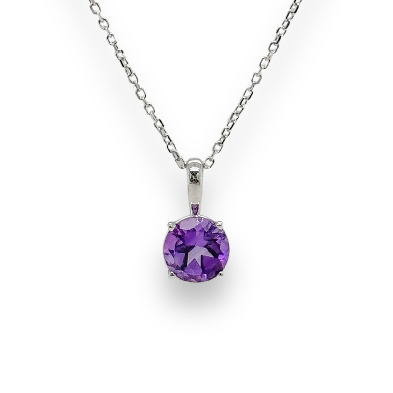 This exquisite 14K White Gold 6mm Round Amethyst Pendant is the perfect addition to any jewelry collection, boasting a timeless and luxurious design. Its striking white gold finish and round 6mm amethyst stone are sure to make it the crown jewel of your wardrobe.