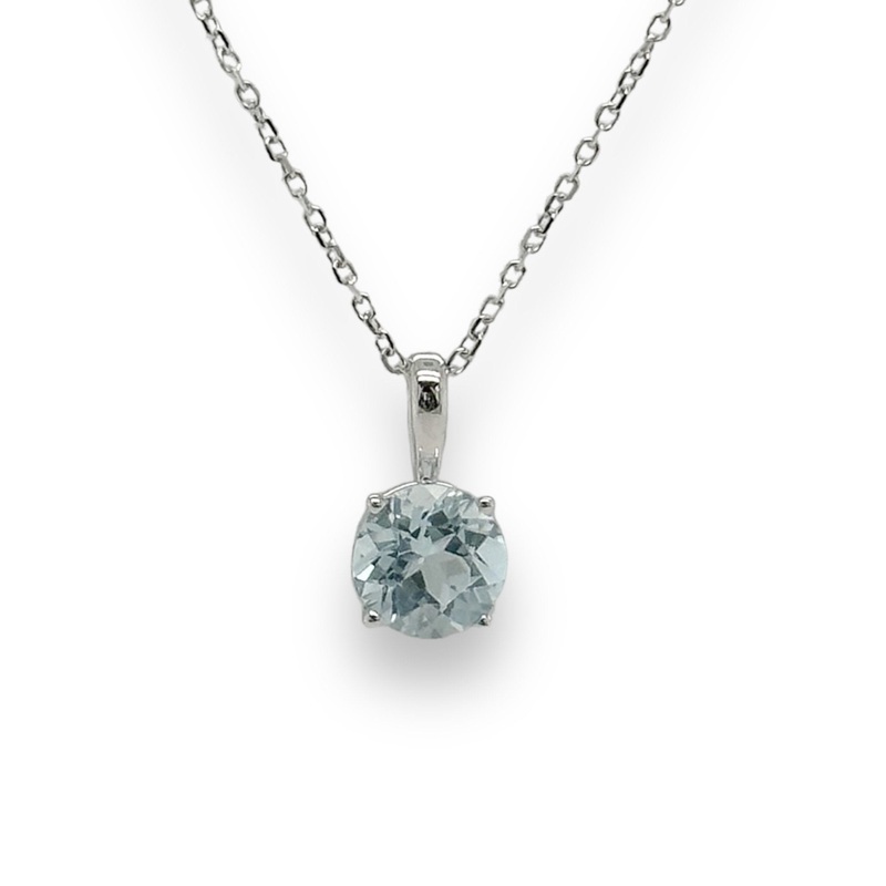 This exquisite 14K White Gold 6mm Round Aquamarine Pendant is the perfect addition to any jewelry collection, boasting a timeless and luxurious design. Its striking white gold finish and round 6mm aqua stone are sure to make it the crown jewel of your wardrobe.