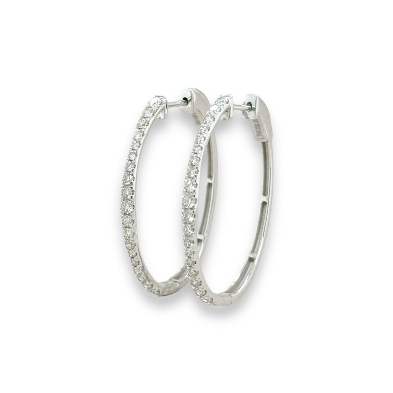 Indulge in luxury with our 14K W Gold 1.00ctw I/SI2 Oval Diamond Hoop Earrings. Made with the finest materials and adorned with sparkling oval diamonds, these hoops exude elegance and sophistication. Elevate your style and make a statement with these exclusive earrings.