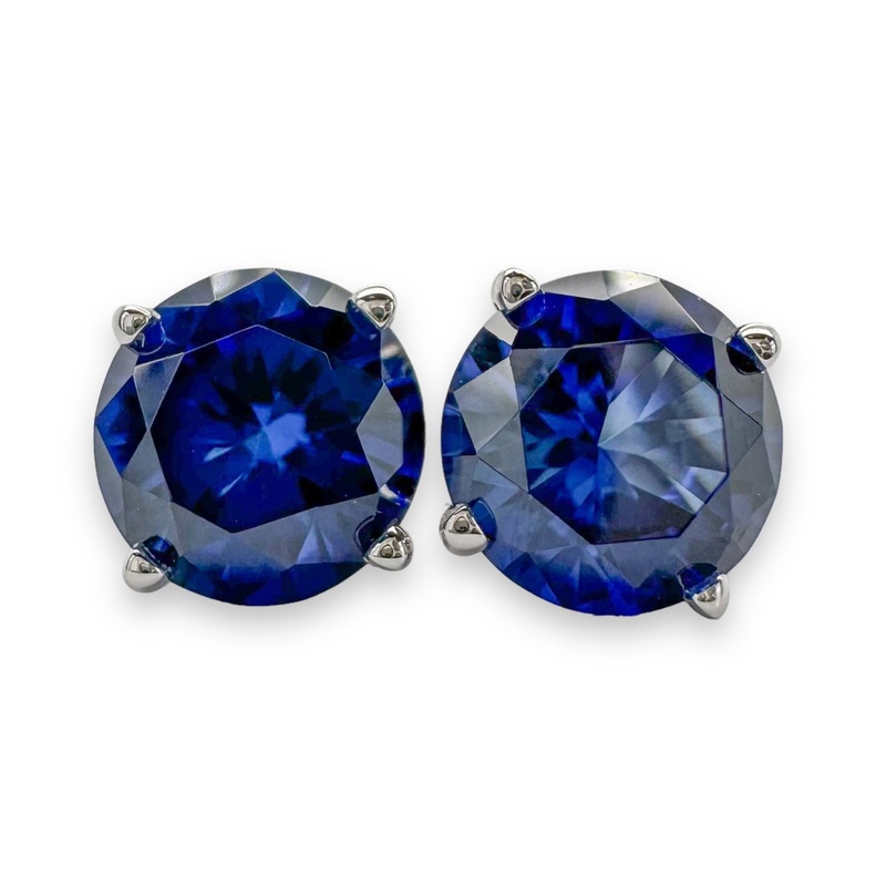 Crafted in shining 14K white gold, these 6mm round lab-created Sapphire earrings exude a timeless elegance. The hue of theSapphire contrasts stylishly with the luminous gold, adding an understated glamour and luxury to any look.