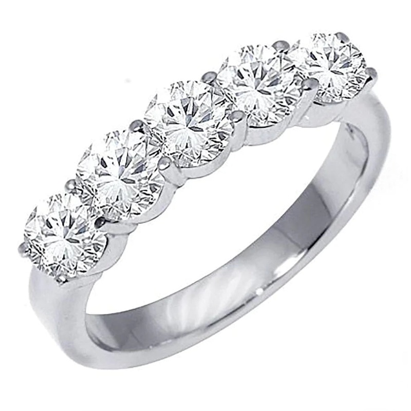 This breathtaking 14-karat white gold band is set with 2.11tcw of 5 breathtaking, laboratory-created diamonds of E/VS1 clarity, offering a luxurious sparkle that will make heads turn. Handcrafted with impeccable attention to detail, this sophisticated and exclusive piece is sure to become a treasured heirloom.
