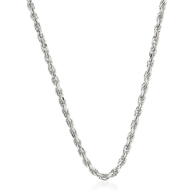 Perfect for layering, or worn alone this diamond-cut rope chain necklace is fashioned in lustrous 14K white gold. The 20-inch chain is approximately 2.5mm wide and secures with a lobster clasp. 7.6grms