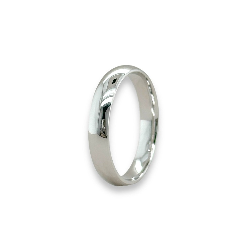 This exquisite 14K white gold 4mm plain band will add a touch of timeless beauty to any wardrobe. Crafted with a smooth and slender profile, the subtle sophistication of this piece makes it a must-have for any jewelry lover. Perfect for special occasions or everyday wear, this classic and luxurious band is sure to turn heads.