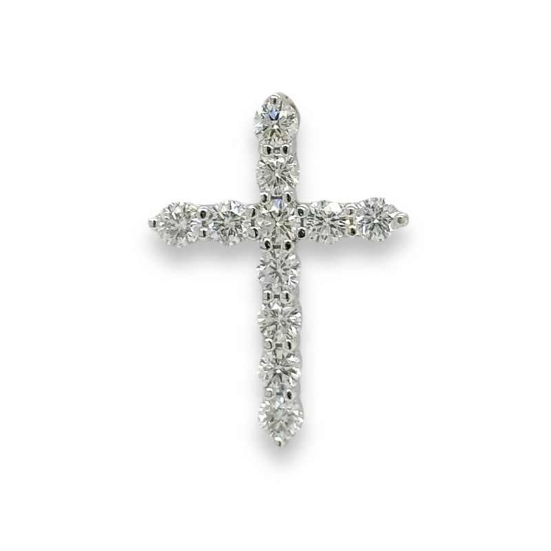 This stunning 14K white gold cross is encrusted with G/VS1 1.00ctw of dazzling lab-created diamonds, perfect for infusing a touch of glamour and luxury into any outfit. Its delicate design and fine craftsmanship make it a beautiful piece of jewelry to be cherished for many years..