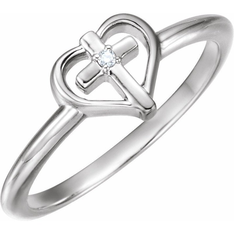 R43080 / Set / 14K White / Polished / .01 Ctw Diamond Cross With Heart Ring