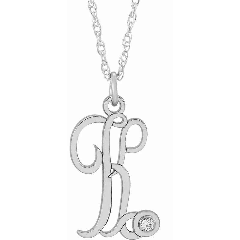 653575 / 14K White / K / 16-18 In / Polished / .02 Ct Diamond Accented Script Initial Necklace