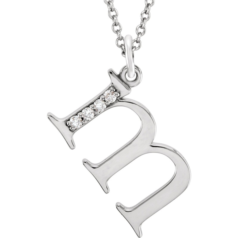 85803 / Necklace / Set / 14K White / M / Polished / .02 Ctw Diamond 16 Inch Initial Necklace