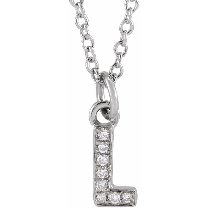 653725 / 14K White / Set / L / Necklace / 6.45 X 3.3 Mm / Diamond / I1, H+ :: 0.03 Ctw / 16-18 In / Polished / .03 Ctw Diamond Petite Initial Necklace