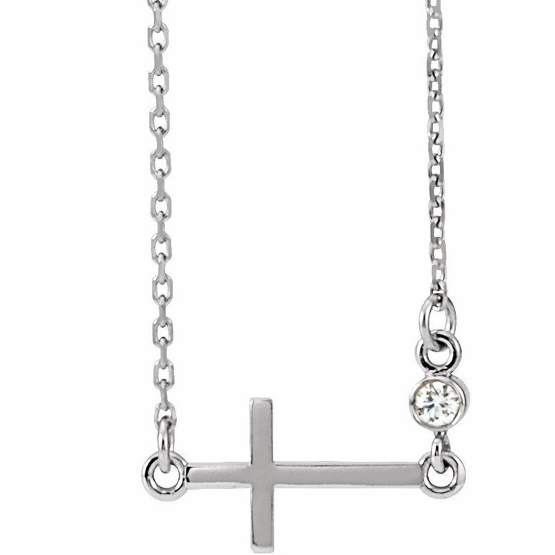 R42355 / Set / 14K White / Diamond / Polished / .03 Ct Diamond Sideways Cross Adjustable Necklace