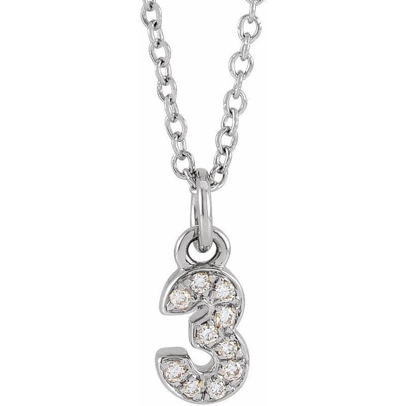 653718 / 14K White / Set / 3 / Necklace / 6.23 X 4.06 Mm / Diamond / I1, H+ :: 0.04 Ctw / 16-18 In / Polished / .04 Ctw Diamond Pave Petite Number Adjustable Necklace