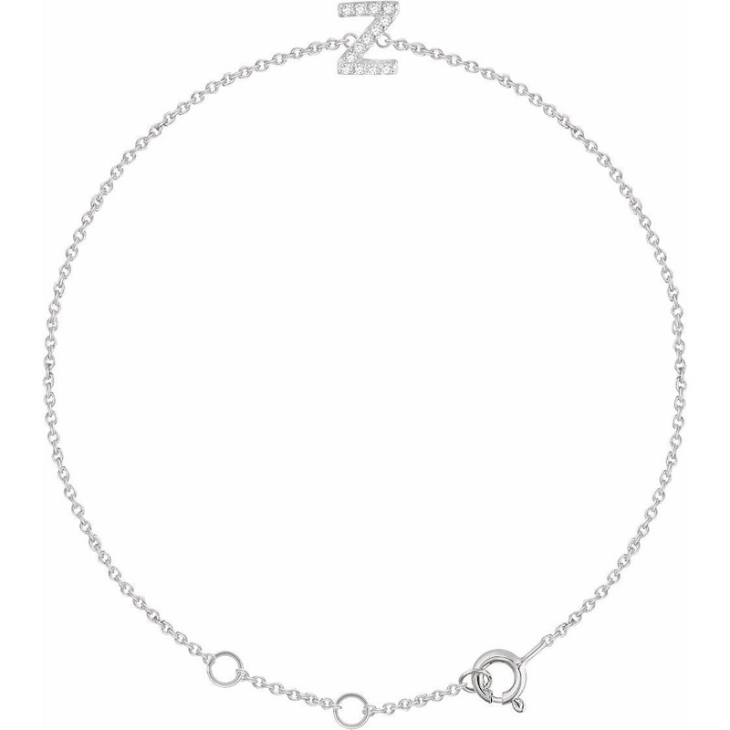 652689 / Set / 14K White / Z / Polished / .06 Ctw Diamond 6-7 Inch Initial Bracelet