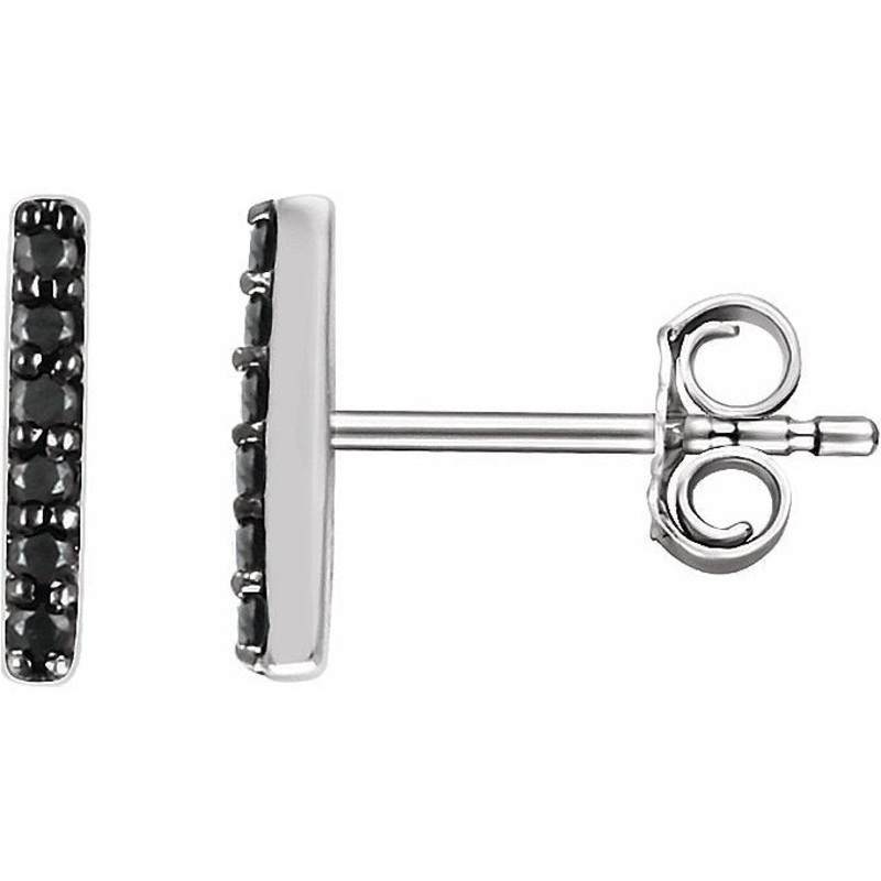 651757 / Earring / Set / Black Diamond / Round / 1.2 Mm / 14K White / Pair / Friction Backs Included / Polished / Black Rhodium-Plated 1/10 Ctw Diamond Bar Earrings