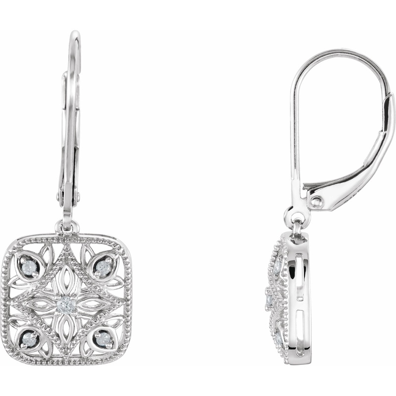 67985 / 14K White / Pair/1/10 Ct Tw / Polished / Diamond Lever Back Earrings
