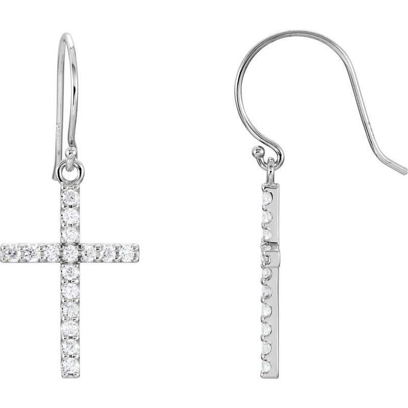 R17010 / 14K White / 1/2Ctw Diamond Cross Earrings