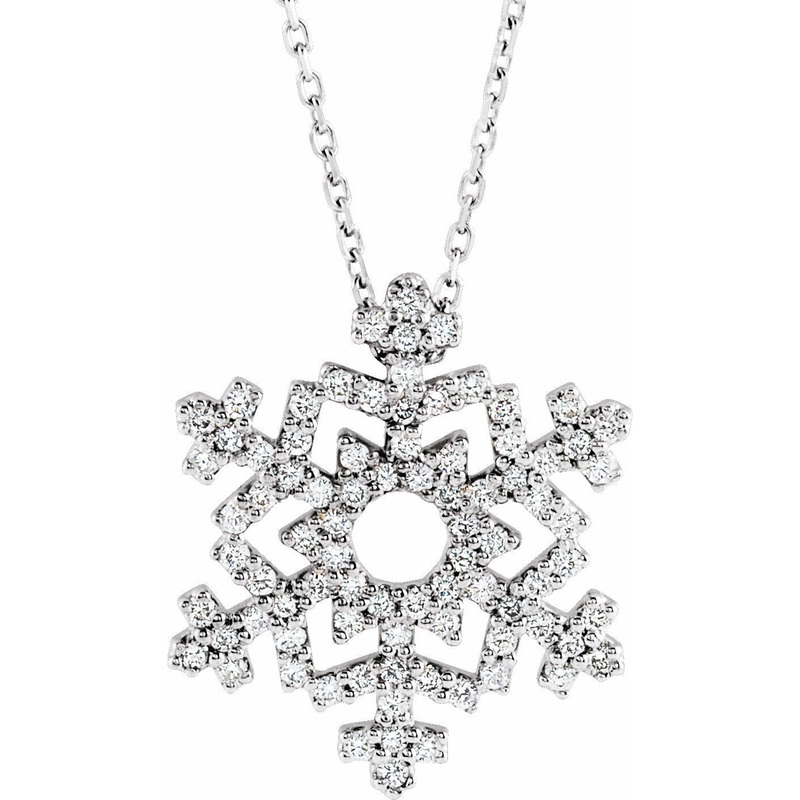 67128 / 14K White / 1/3 Ct Tw I1,Gh 16 / Polished / 1/3 Ctw Diamond Snowflake Necklace