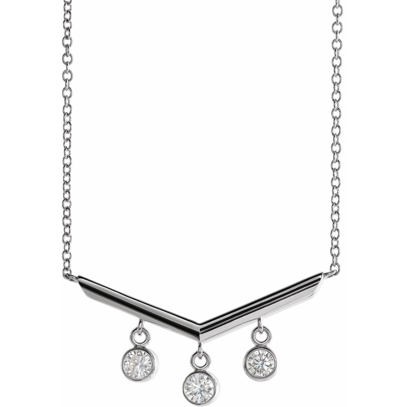 87084 / 14K White / Set / Diamond / Round / 3 Mm / Necklace / 18 In / Polished / 1/3 Ctw Diamond V Bar Necklace