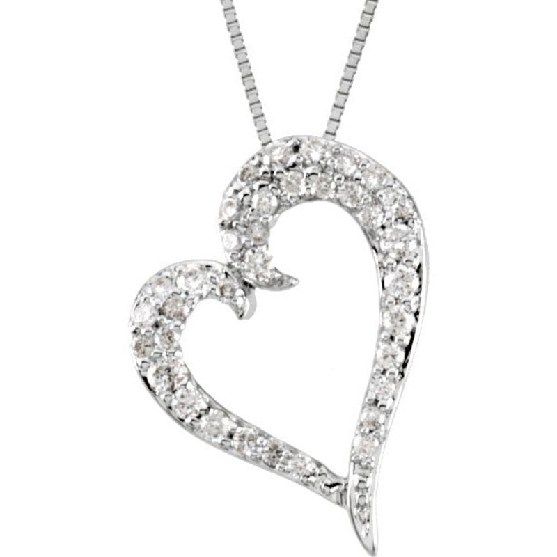 67018 / 14K White / 1/4 Ct Tw / Polished / Diamond Heart 18 Inch Necklace